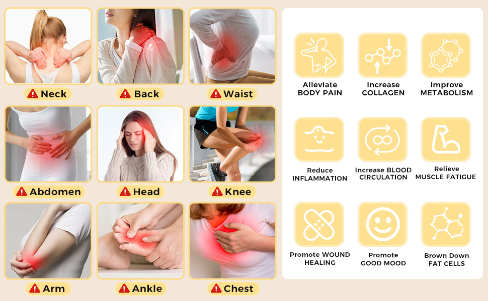 - Multifunctional Custom Controller: Tailor your therapy sessions effortlessly with the advanced controller. Select from 5 intensity levels (ranging from 39W to 100W), set precise session durations with a timer adjustable from 5 to 30 minutes, and optimize results using three modes—Standard, 10 Hz, and 40 Hz pulse settings