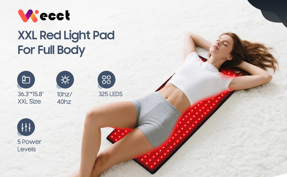 WECCT Full Body Red Light Therapy Mat 36.3"x15.8" – Includes 5-Level Dimmer & 10/40Hz Pulse Controller