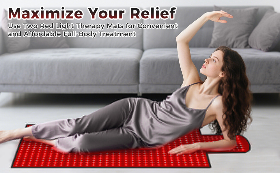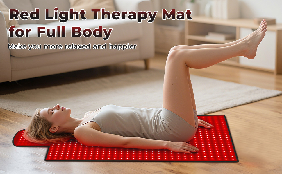 - Body Coverage: Experience total body relaxation with our 65"x20.5" red light therapy mat, designed to deliver comprehensive red light therapy at home. Its large rectangular surface includes extended therapy zones for the neck and head, ensuring a fully immersive therapy session.