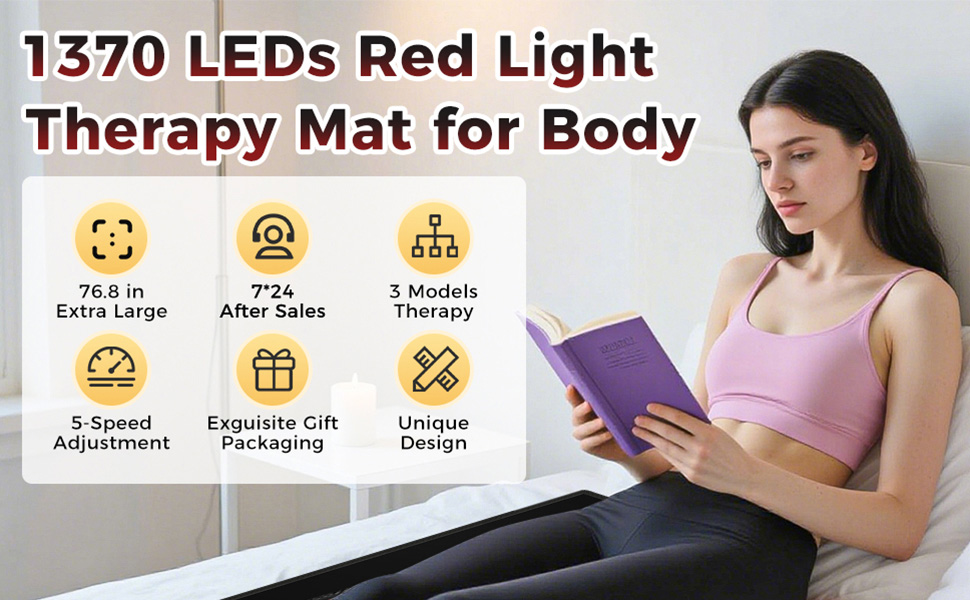 WECCT Red Light Therapy Mat Back Pain Relief 1370 LEDs 660nm & 850nm Large Size