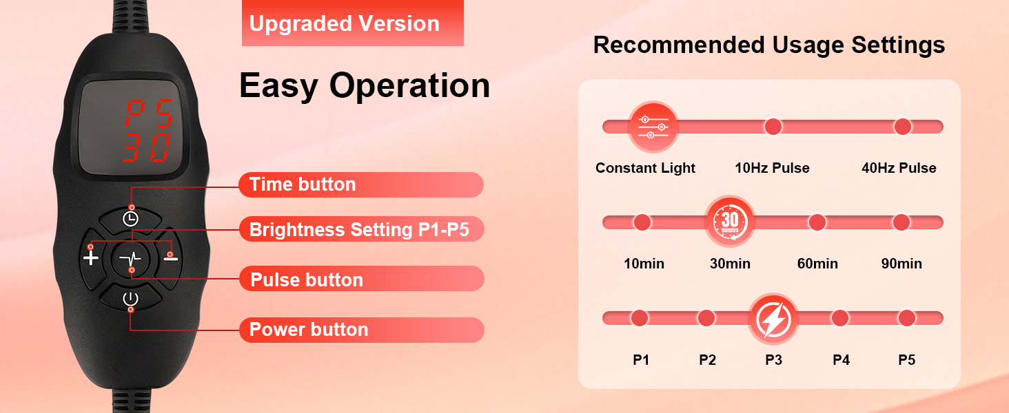 - 【Multifunctional Controller】: Redlight therapy for body aims to let everyone enjoy pro-grade red-light therapy at home with comfort and convenience, especially for seniors with limited mobility. The infrared light therapy mat features 5 brightness levels, 3 light modes, and a 10-90 minute auto shut-off + "constant on" timer.